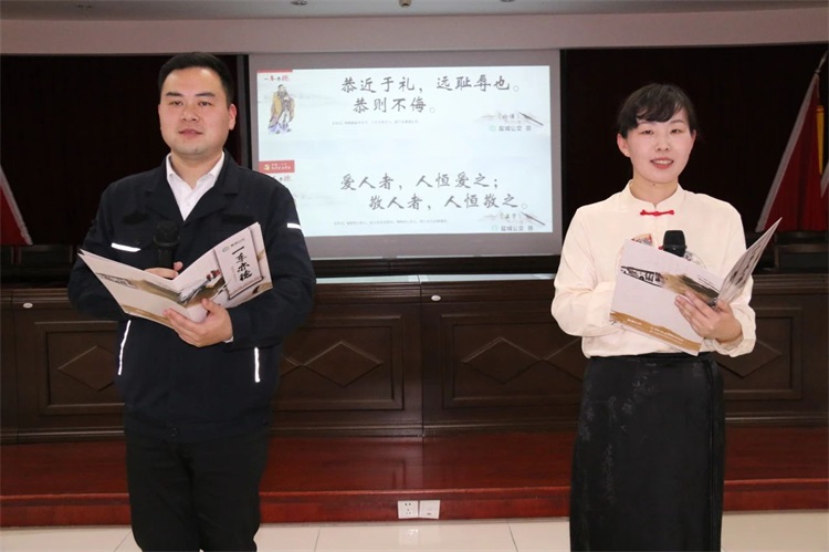 本期道德讲堂共设“诵经典、讲故事、展风采、送笑脸、唱歌曲、作点评”六个环节,通过身边人讲身边事、身边事教身边人,让心灵在道德讲堂升华,让正气在道德讲堂滋长。