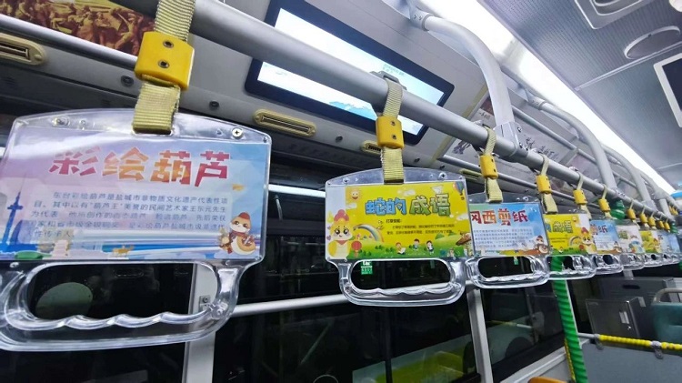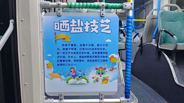除了安全保障、服务提升,市开元网站登录入口公司还在校园定制专线上融入了盐城地方特色文化元素,打造了独具特色的“非遗文化车厢”。走进车厢,映入眼帘的是充满年味的蛇年主题装饰,拉手环上印着“灵蛇献瑞”、“笔走龙蛇”等寓意好的成语,车辆上方的宣传栏及车辆挡板上则展示了“晒盐技艺”“彩绘葫芦”“冈西剪纸”等盐城丰富的非物质文化遗产及蛇的寓意简介,让学生们在乘车途中,就能感受到浓厚的文化氛围。