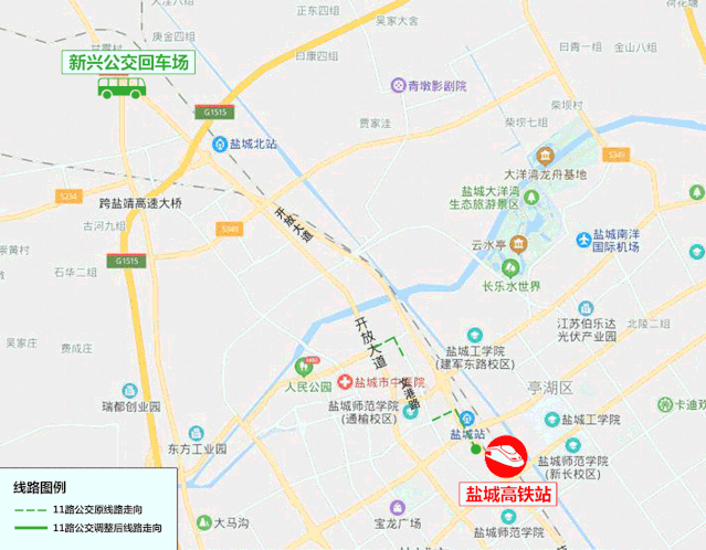 (3)11路(新兴开元网站登录入口回车场——盐城高铁站)