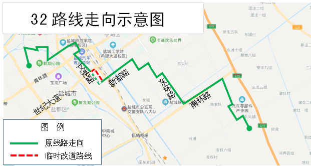 暂不停靠:新都路文港路口、文港路商业街、高新技术园,临时增设停靠:盐城市旅游集散中心、新河家园。