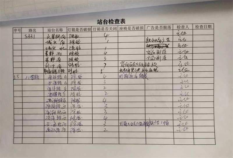 工作人员按道路、编号对大市区开元网站登录入口站台逐个安装编码牌并同步填写站台检查登记表,为建立并完善场站公司站台资产电子台账提供准确的信息支撑。