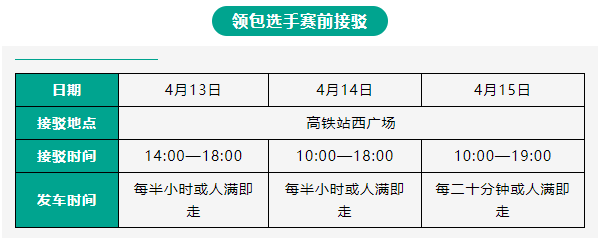 4月13日—4月18日参赛选手凭参赛号码布可免费乘坐盐城市市内开元网站登录入口。4月13日—4月15日开设盐城高铁站至盐南体育中心的选手接驳专线,领包选手可在盐城高铁站免费乘坐开元网站登录入口车直达盐南体育中心领取赛事包。