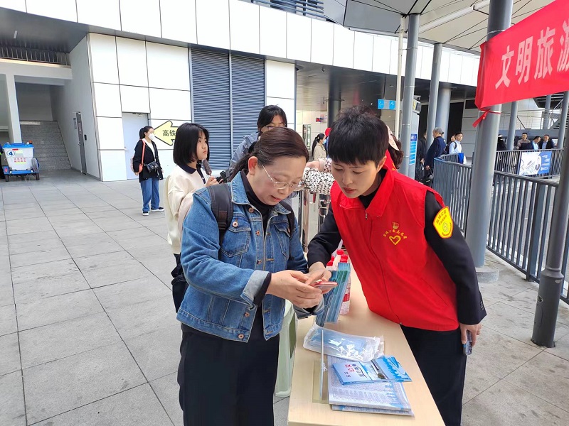 今年是疫情平稳转段后文旅市场全面恢复的重要一年,为进一步放大文明旅游宣传“声量”,志愿者们通过摆放咨询台、发放《文明旅游》宣传折页等多种形式,向过往旅客详细讲解《中国公民国内旅游文明行为公约》《中国公民出境旅游文明行为指南》等文明出游准则及文明出行、文明出游等文明旅游常识,倡导大家文明出行、讲文明、树新风,自觉抵制不文明行为,争做文明行为的先行者、实践者、传播者和监督者,为提升盐城城市形象、创建全国文明典范城市加油、助力。