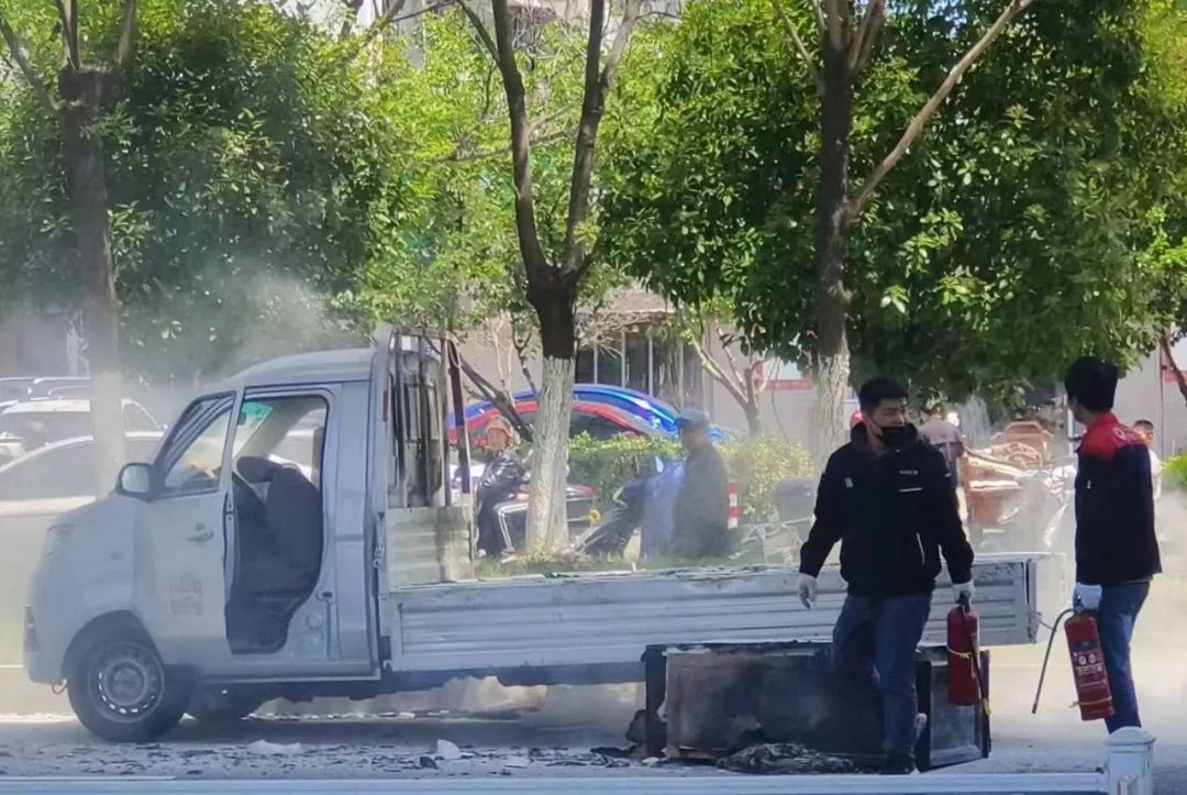 在这紧急关头,金浦师傅迅速将车辆停至安全地带,拎起灭火器就冲了上去。金浦回忆,正在燃烧的货车黑烟滚滚,呛得他眼泪直流。