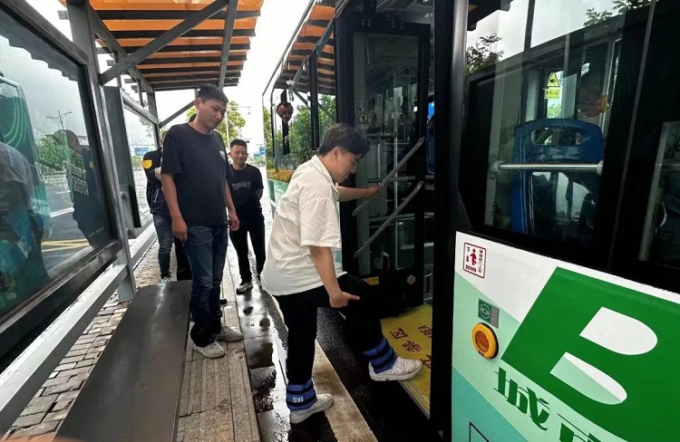 腿绑十斤沙袋、手拎物品,即使是20多岁的年轻人也会一下子变得行动迟缓,瞬间体验到老年乘客上下车的艰难。“拿着沙袋的时候感觉并不太沉,但绑在腿上之后,腿弯不动,上下车很费力,只能慢慢地往车上挪。“95后驾驶员刘丰说:“以后遇到老年人乘车我会慢一点,一定让他们稳稳当当上车坐好之后再起步。”